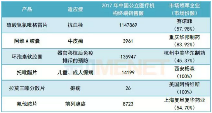 (來(lái)源:米內(nèi)網(wǎng)中國(guó)公立醫(yī)療機(jī)構(gòu)終端競(jìng)爭(zhēng)格局)
