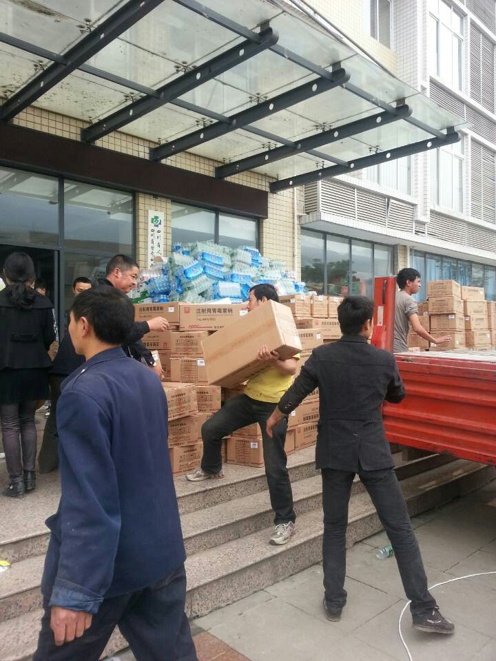 蘆山縣人民醫(yī)院門口,哈藥集團(tuán)送來了急需藥品。(中國證券網(wǎng)記者 田立民)