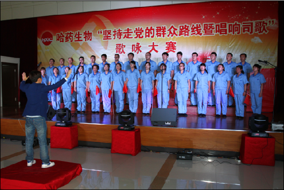 本次比賽的口號是“唱響司歌,聽我們的”。比賽要求每支隊伍演唱兩首歌曲,其中一首為規(guī)定曲目——司歌《哈藥生物之歌》,另一首為自選曲目。比賽共有五支代表隊參賽,他們以飽滿的精神投入比賽,用富有深情和力量的歌聲,演唱了《走在大路上》、《江山》、《走向復(fù)興》、《歌唱祖國》、《今天是你的生日》等曲目,熱烈的氣氛感染了現(xiàn)場的每一位觀眾。各參賽隊演唱中間還穿插了自選的特色節(jié)目,全體演員將自己精心排練的節(jié)目盡情發(fā)揮、傾情演出,整個會場高潮迭起,掌聲不斷,充分展示了哈藥生物員工積極向上的精神面貌,唱出了對黨、對祖國、對企業(yè)的熱愛之情和哈藥生物黨員干部積極走黨的群眾路線的決心,表達(dá)了哈藥生物全體員工團(tuán)結(jié)一致,實(shí)現(xiàn)企業(yè)新跨越的豪情壯志。由哈藥生物團(tuán)委精心排練表演的舞蹈,充分展現(xiàn)了年輕人的活力與激情。此外,比賽間隙還穿插播放了哈藥生物圍繞“成長”、“拼搏”、“快樂”、“活力”與“夢想”這五個主題特別制作的五段短片,更好地詮釋了哈藥生物的企業(yè)文化,將比賽推向了高潮。