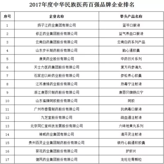 “2017年度中華民族醫(yī)藥百?gòu)?qiáng)品牌企業(yè)”榜單是商會(huì)通過(guò)廣泛征集,對(duì)比企業(yè)品牌知名度、企業(yè)誠(chéng)信度以及嚴(yán)守國(guó)家相關(guān)政策法規(guī)等多項(xiàng)標(biāo)準(zhǔn),經(jīng)專家委員會(huì)討論審核,最終嚴(yán)選出來(lái)的,旨在弘揚(yáng)民族醫(yī)藥、打造民族品牌,樹立標(biāo)桿、發(fā)揮榜樣作用、促進(jìn)中醫(yī)藥行業(yè)發(fā)展。
