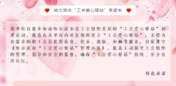 “愛心驛站”以保障和改善戶外勞動者的生產生活條件為目的,重點解決環(huán)衛(wèi)工人、出租車司機、交通警察、快遞員、城管人員、建筑工人、市政維修工等戶外勞動者的飲水、就餐、如廁和休息等實際困難。建立特色的志愿服務站點體系是哈藥集團的一份責任,更是一份擔當。未來,哈藥會傳遞志愿服務精神,履行社會責任,為黑龍江省創(chuàng)建全國文明城市作出貢獻。