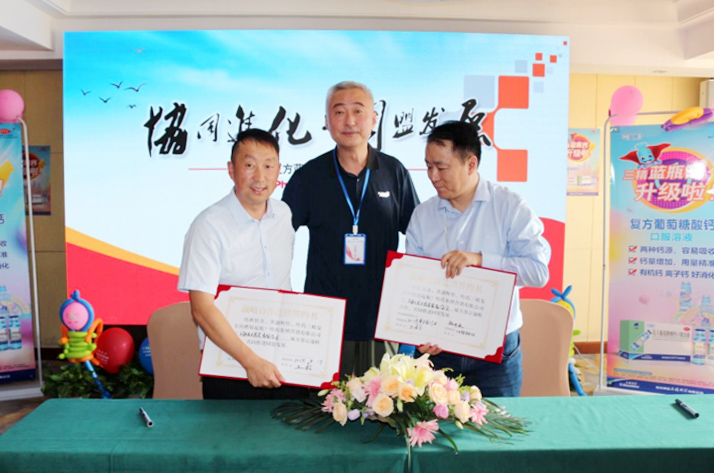 在 OTC 事業(yè)部西區(qū)大區(qū)經(jīng)理石海波的見證下,哈藥集團(tuán)與連鎖客戶現(xiàn)場(chǎng)進(jìn)行了復(fù)方葡萄糖酸鈣口服溶液戰(zhàn)略合作簽約儀式。
