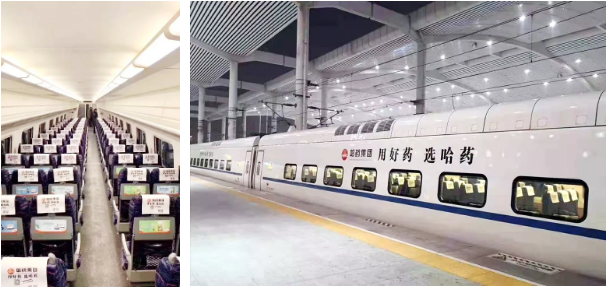 哈藥集團冠名的高鐵列車通過車體包裝、車內語音播報、LED滾動屏展示哈藥品牌和列車內門貼、桌貼、海報等產品宣傳與品牌傳播形式,以及車廂內座椅枕巾的電商二維碼與消費者形成了互動,全面達到了動靜結合,品銷合一的傳播效果。