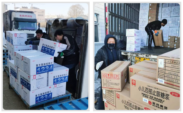 上午9時(shí)許,哈藥三精、哈藥六廠、中藥二廠、哈藥總廠、世一堂制藥廠、三精四廠及哈藥生物裝運(yùn)物資的員工冒著寒冷的天氣,認(rèn)真核對批號、數(shù)量,最短時(shí)間完成裝貨。21時(shí)許,滿載哈藥集團(tuán)捐贈(zèng)物資的車輛在松北區(qū)順豐醫(yī)藥集散點(diǎn)集結(jié)完畢,奔赴武漢。